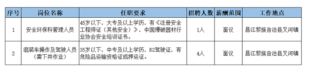 云南民爆集團有限責任公司海南昌江分公司招聘公告