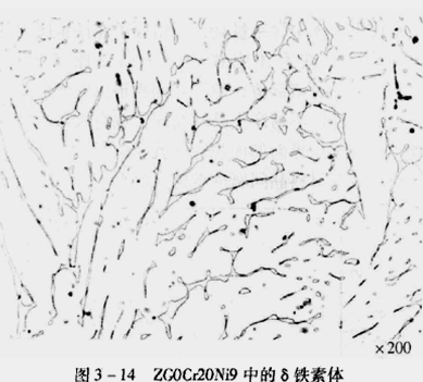 - 鑄造的鉻-鎳奧氏體不銹鋼,鑄態(tài)化學(xué)成份不均勻,鐵素體形成元素偏聚區(qū)。