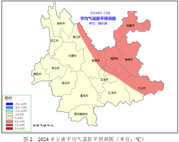 全省大部地區(qū)降水接近常年同期到偏少,氣溫接近常年同期到偏高。據(jù)氣象部門(mén)預(yù)測(cè),降水:迪慶州西北部、怒江州北部、昭通市東北部、曲靖市東北部邊緣地區(qū)偏多10%—20%,其余大部地區(qū)接近常年同期到偏少,其中西雙版納州、普洱市中西部、臨滄市中南部、保山市南部、德宏州中南部偏少10%—20%(見(jiàn)圖1)。氣溫:全省大部地區(qū)接近常年同期到偏高,其中文山州中北部、曲靖市、昭通市、昆明市、楚雄州東北部、麗江市東部偏高0.5~1.0℃(見(jiàn)圖2)。重點(diǎn)關(guān)注:冬春季階段性強(qiáng)冷空氣引發(fā)的低溫冰凍雨雪天氣;2月下旬至4月上旬滇東北、滇西北及高海拔地區(qū)倒春寒天氣;春季冰雹大風(fēng)等強(qiáng)對(duì)流天氣;春末夏初氣象干旱;主汛期強(qiáng)降水引發(fā)的洪澇和地質(zhì)災(zāi)害,區(qū)域性氣象干旱。
