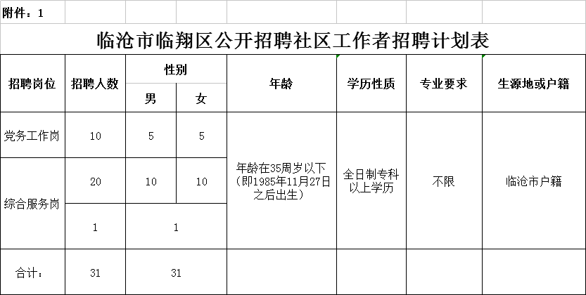 附件:1.《臨滄市臨翔區(qū)公開招聘社區(qū)工作者招聘計劃表》.xlsx